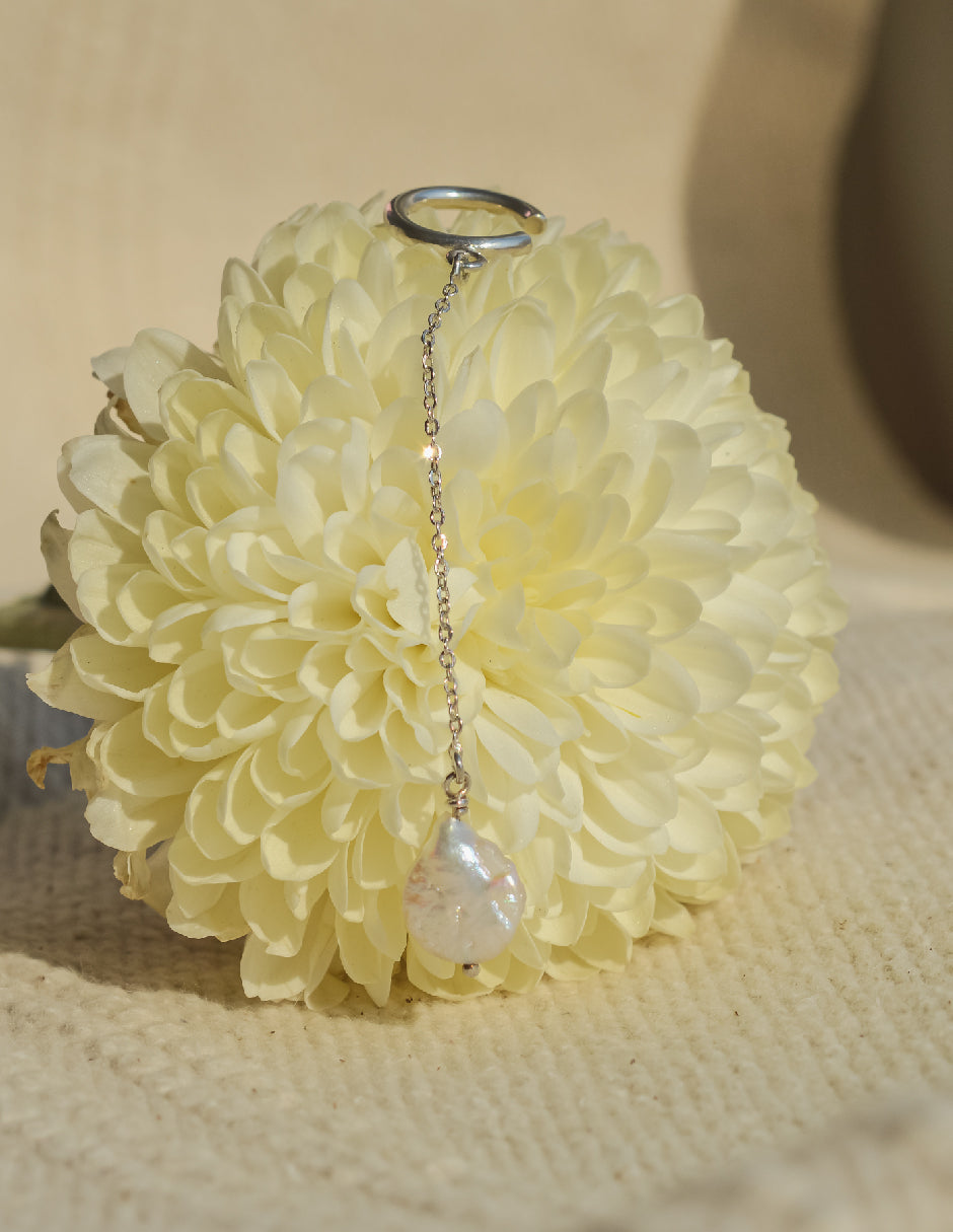Ear Cuff Clara perla orgánica Plata .925