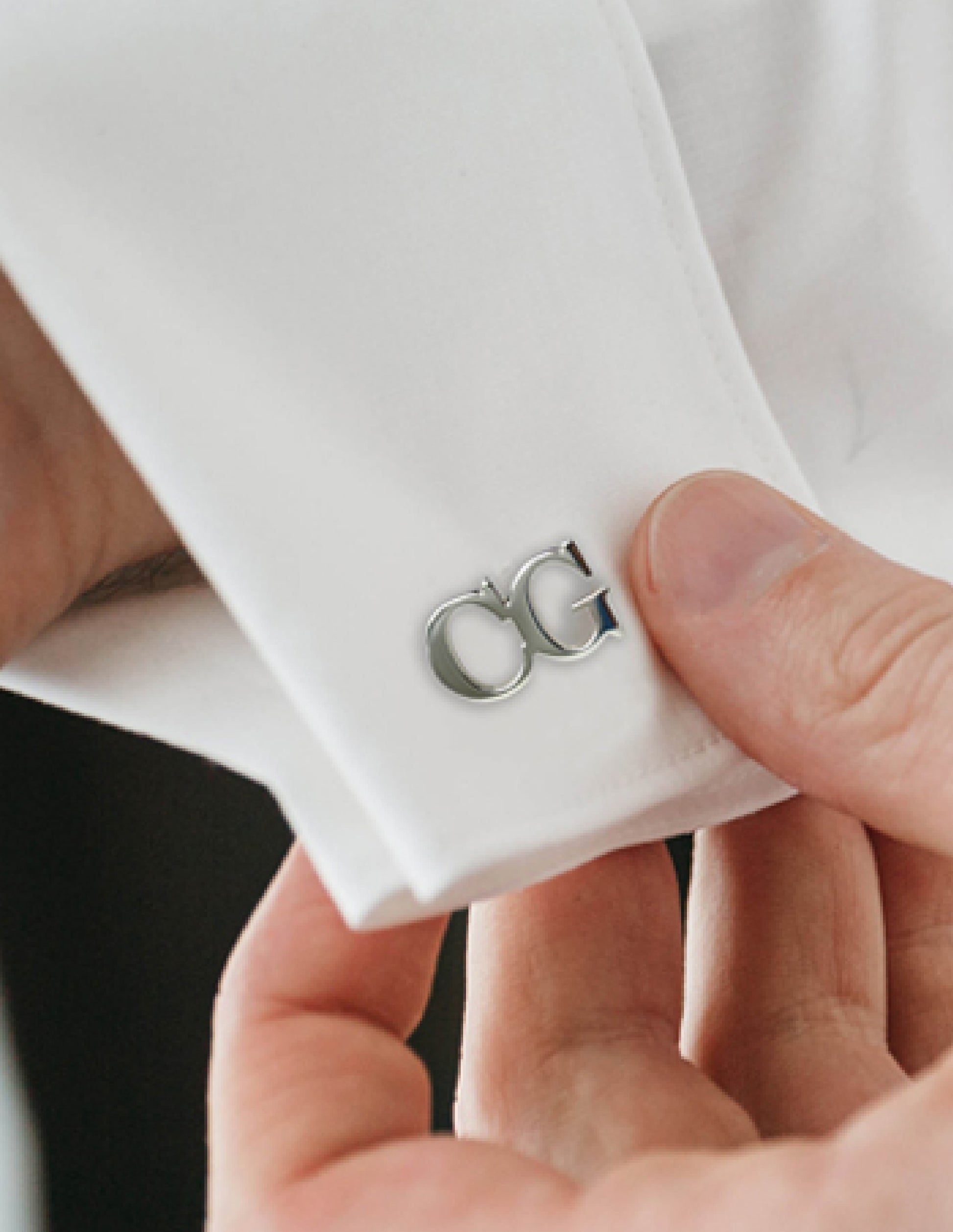 La personalización con tus iniciales agrega un toque único y exclusivo, haciendo que cada par de mancuernillas sea verdaderamente tuyo. Las iniciales están grabadas con precisión y elegancia, destacándose en la plata brillante y creando un contraste visual atractivo.