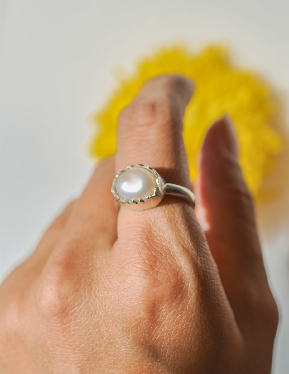 La perla cultivada es una gema única, formada en el corazón del océano a lo largo del tiempo. Nuestro anillo destaca esta maravilla natural, capturando su brillo y elegancia en una obra de arte que puedes llevar en tu mano.