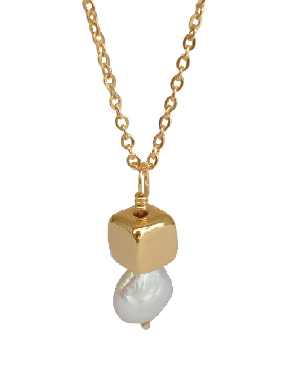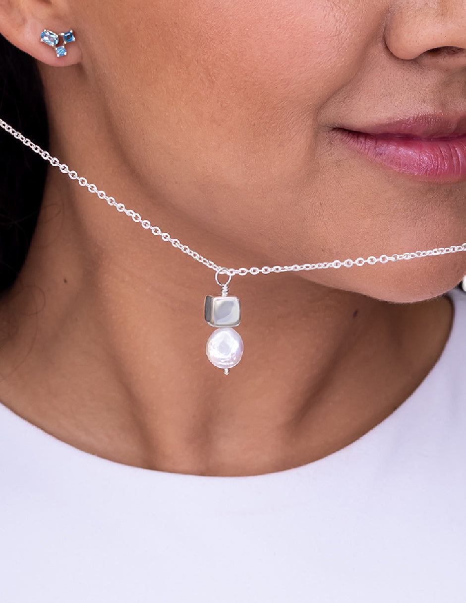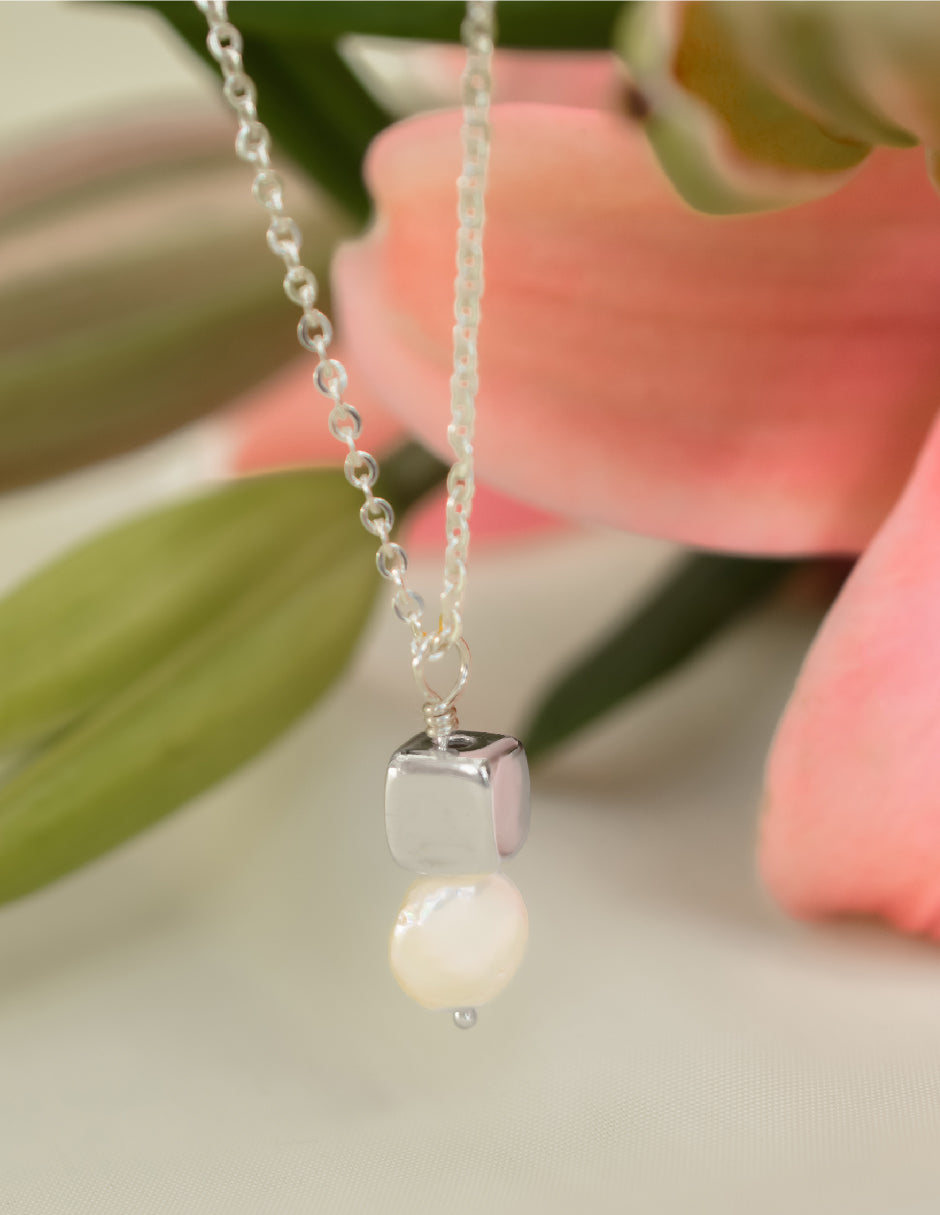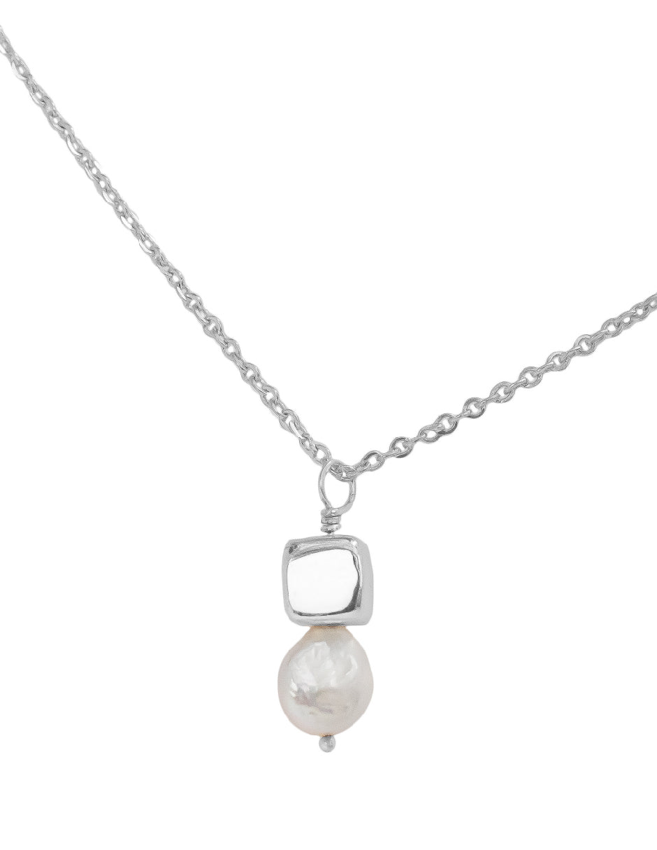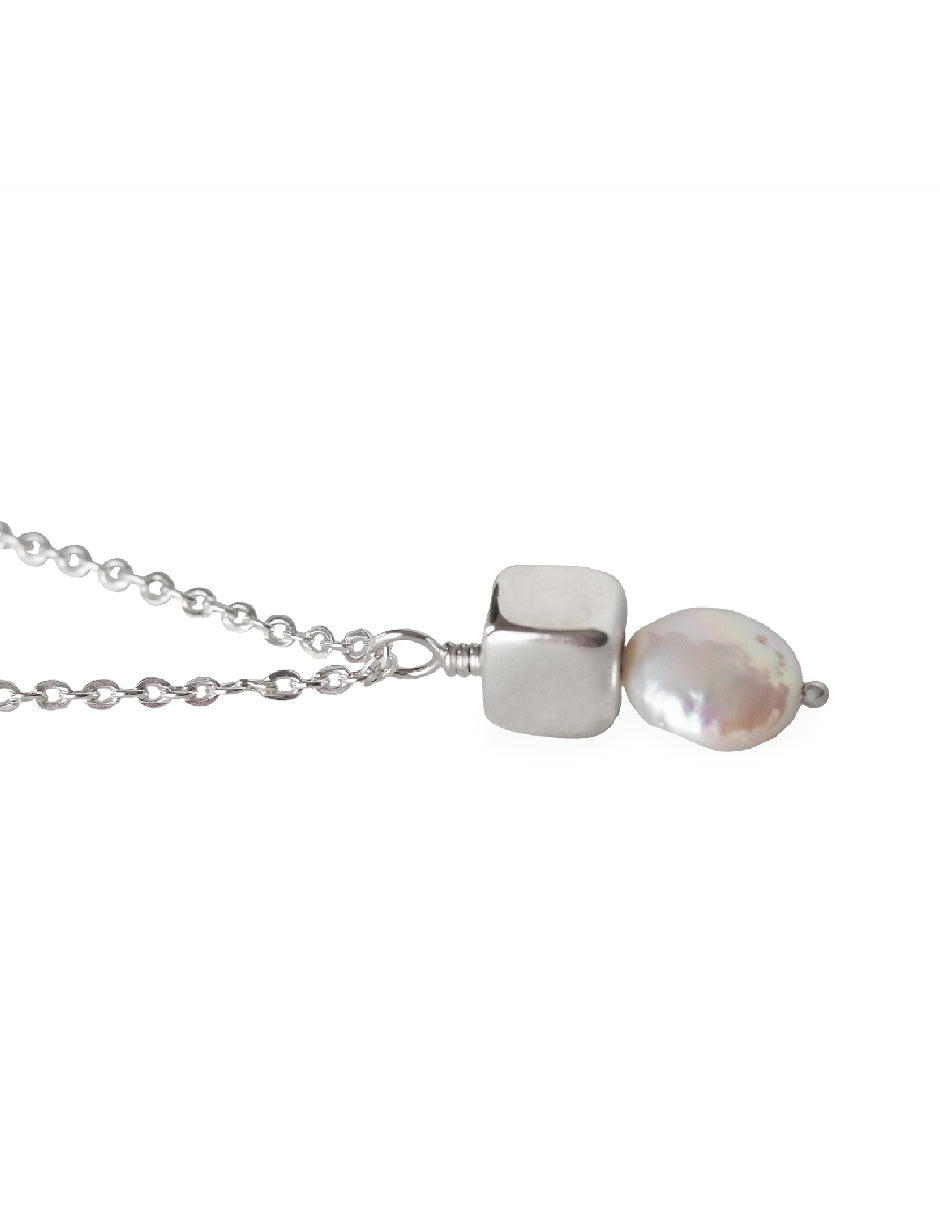 Collar perla orgánica y cubo Hadassa Plata .925
