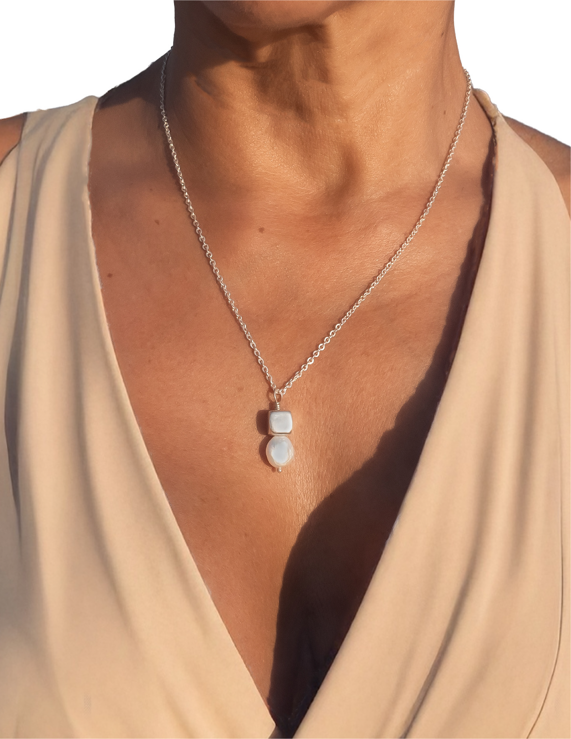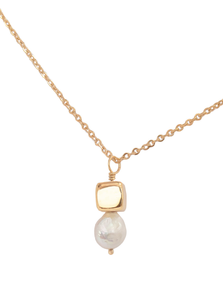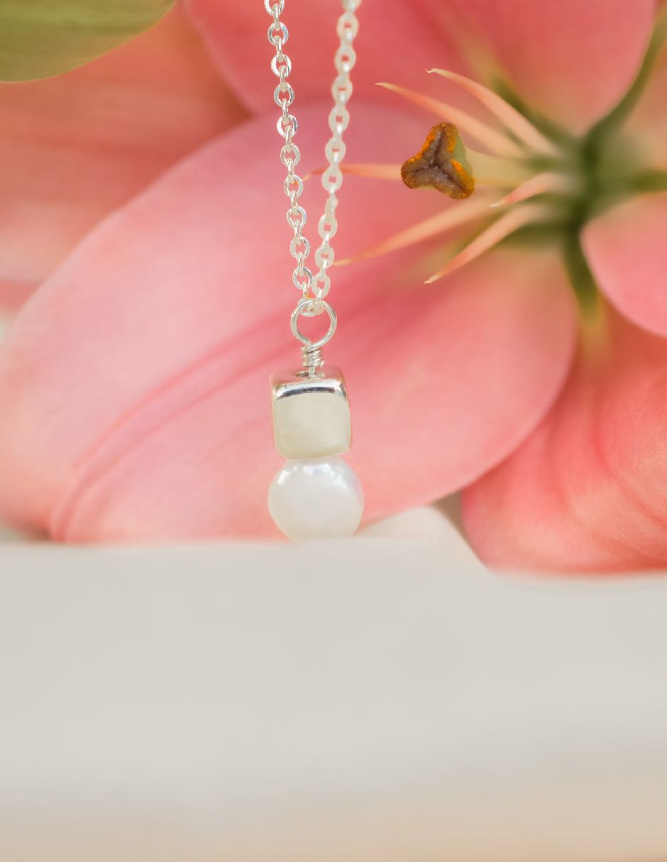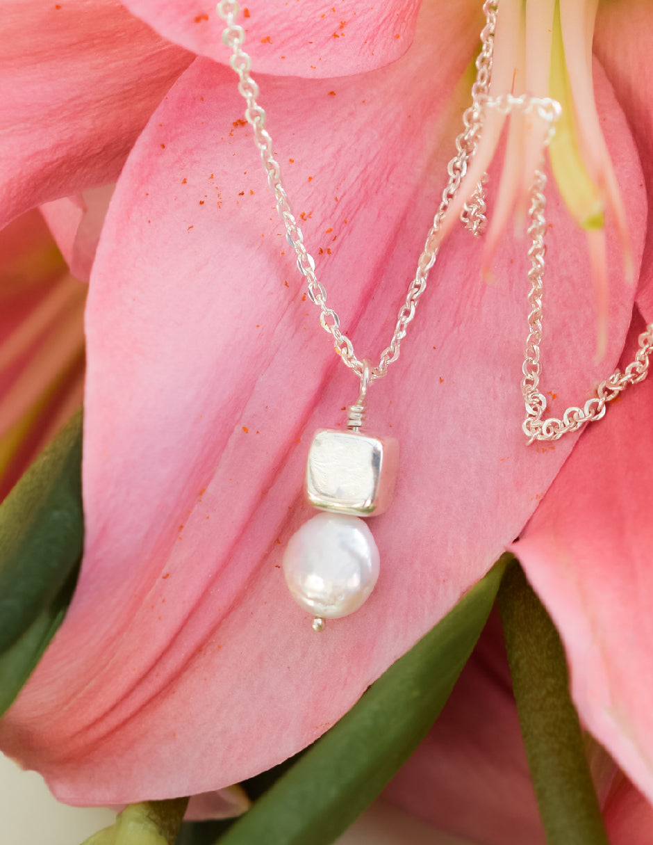 Collar perla orgánica y cubo Hadassa Plata .925