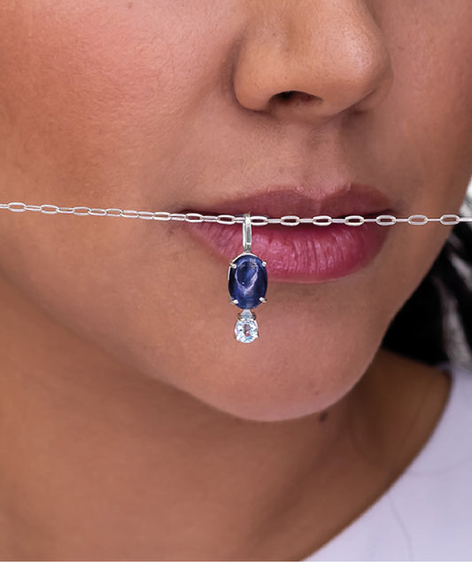 Collar de topacio, turmalina, cuarzo blanco y aguamarina Capri Plata .925