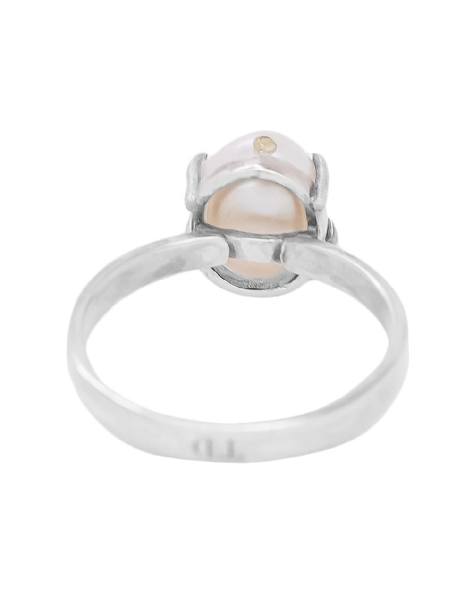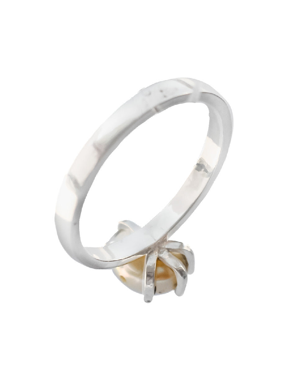 La perla orgánica, cuidadosamente cultivada, añade una nota de sofisticación natural a este anillo. Su suavidad y brillo se combinan para crear una joya que personifica la pureza y la elegancia de la naturaleza.
