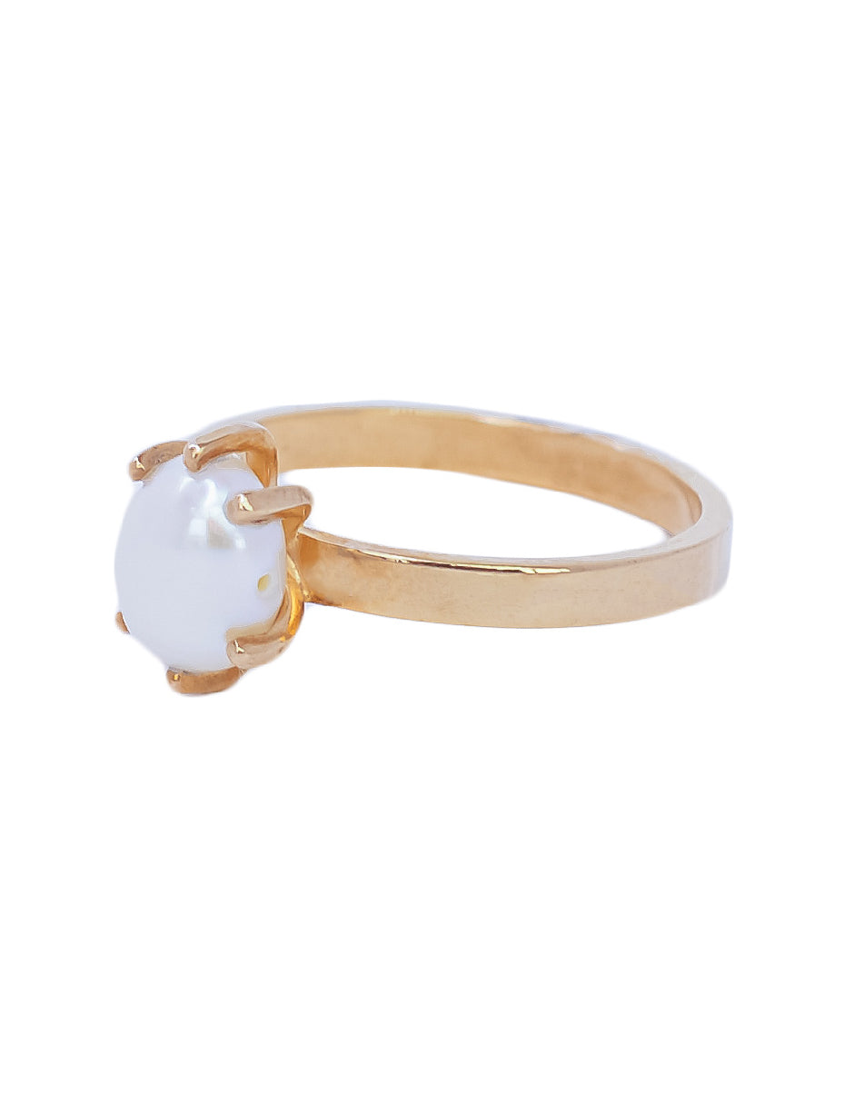 Anillo de Perla Orgánica en Plata .925 con Chapa de Oro de 14 Kilates