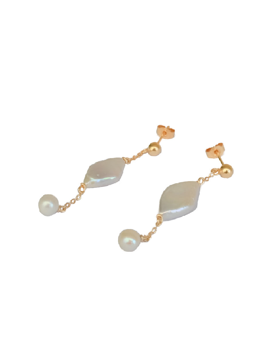 Estos aretes colgantes de rombos en perla son más que adornos; son un recordatorio constante de tu capacidad para brillar en toda tu gloria, a pesar de las tormentas que puedan surgir. Deja que la suave luz de las perlas ilumine tu camino y te inspire a navegar con gracia y confianza en la vida.