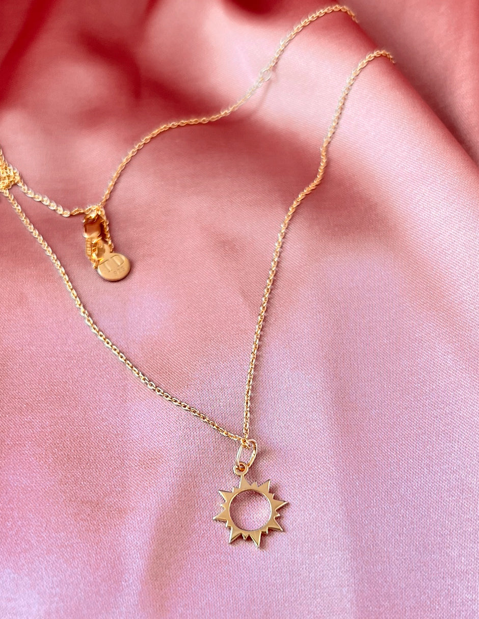 Collar de Sol de Plata .925 con Chapa de Oro de 14 k, es una explosión de vitalidad y energía radiante inspirado en esta gigante estrella. Con su diseño intrincado, captura el brillo y el calor del sol, recordándonos la fuerza interior y la capacidad de iluminar el mundo que llevamos dentro.