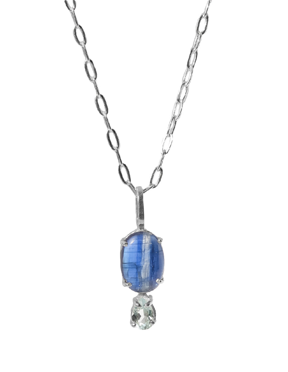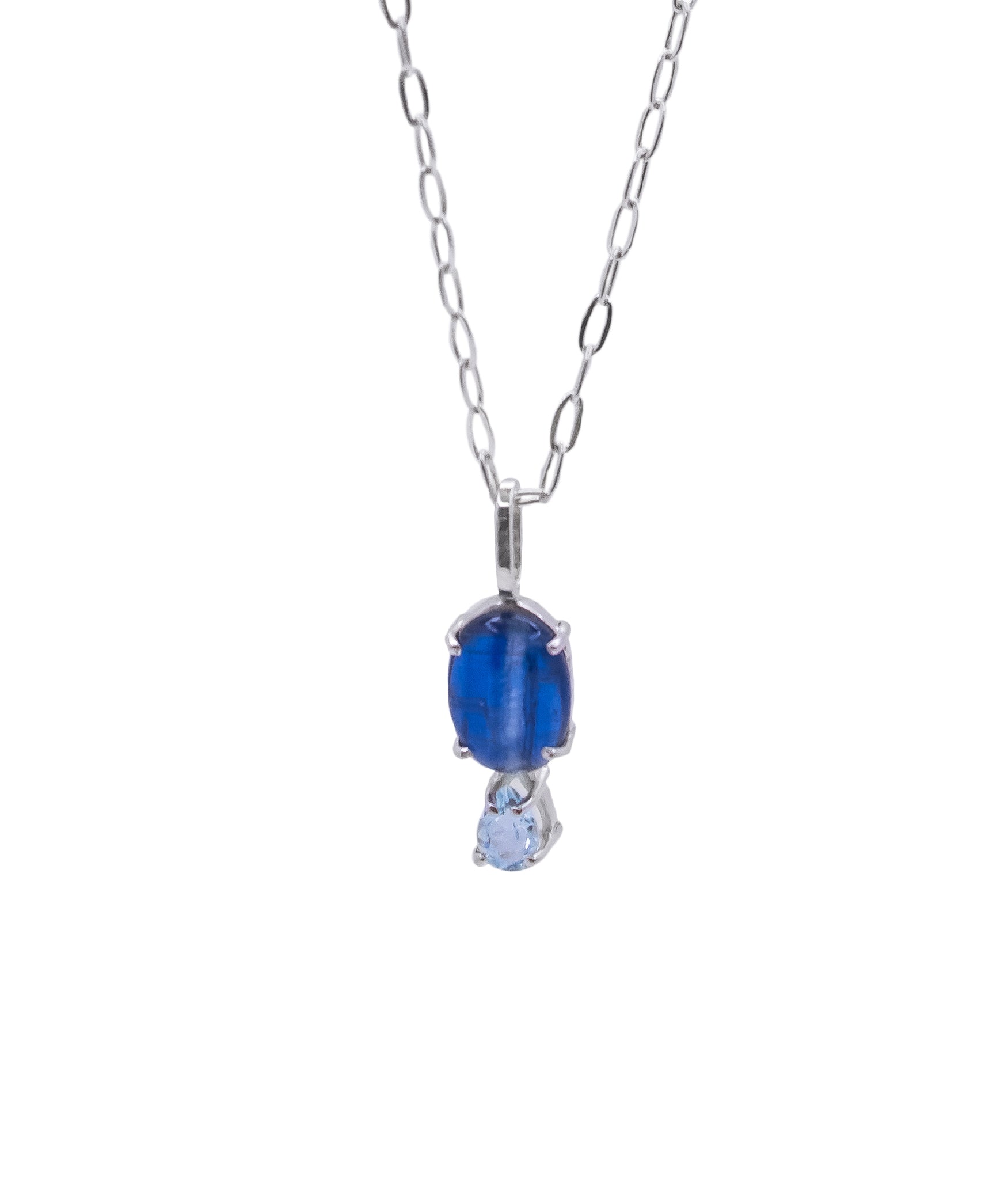 Embárcate en un viaje de serenidad y claridad con nuestro collar único, donde la intensidad de la sodalita se encuentra con la frescura de la aguamarina, todo cuidadosamente montado en plata .925. Cada piedra cuenta su propia historia de beneficios, haciendo de este collar más que una joya, una experiencia de bienestar.