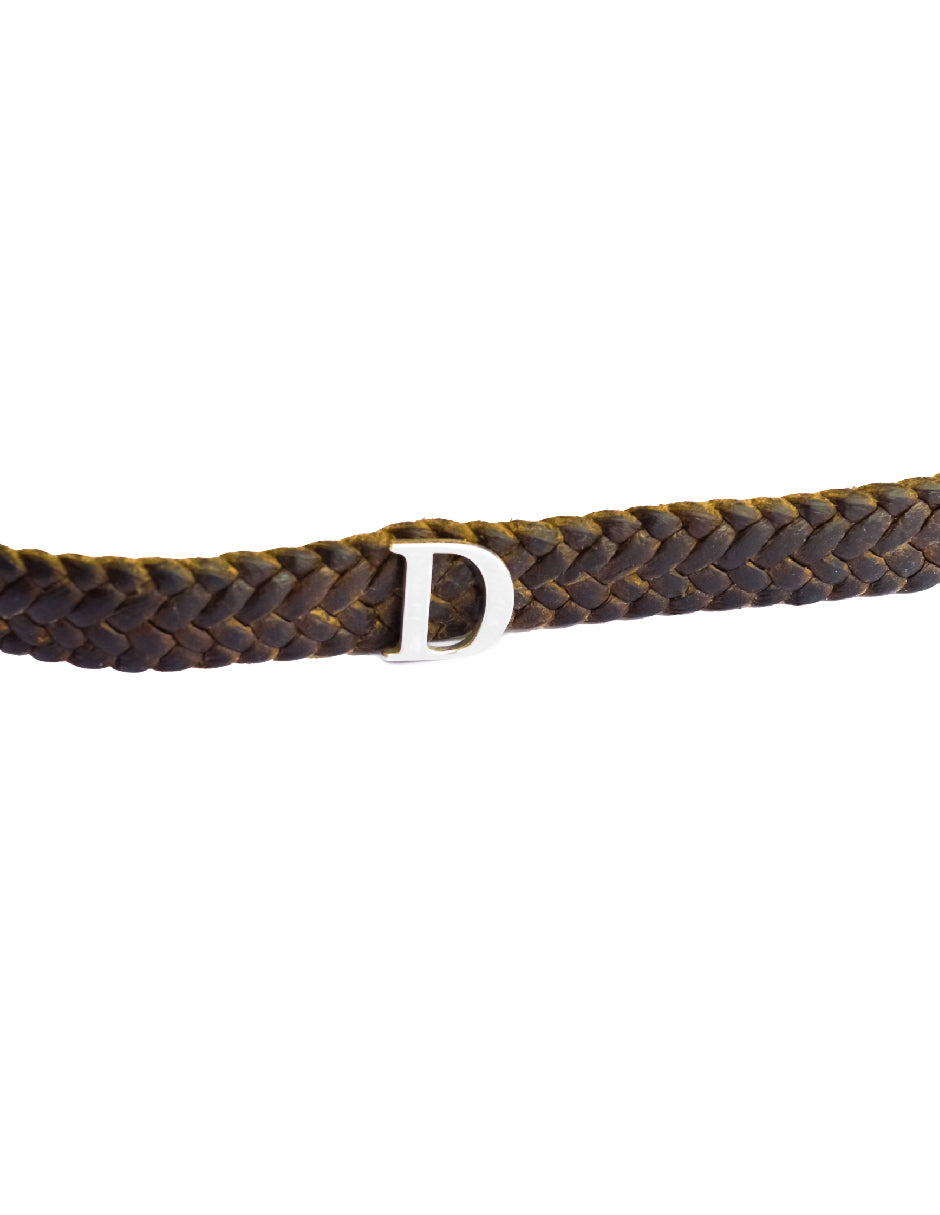 Pulsera de cuero tejido de manera artesanal, cuidadosamente seleccionado para ofrecer una calidad única y duradera, garantizando así una pieza resistente y cómoda para el uso diario. La pulsera se complementa con una inicial de Plata .925.